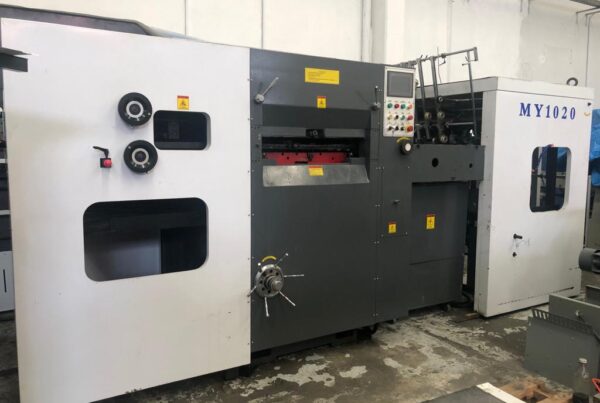 Maquina de Hot Stamping NUEVA formato 80 x 1.10 mts con 3 jalones de películas, paros de emergencia, lubricación automática y modulo operacional. Velocidad: 1,200 golpes x hora (depende de la habilidad del operador).